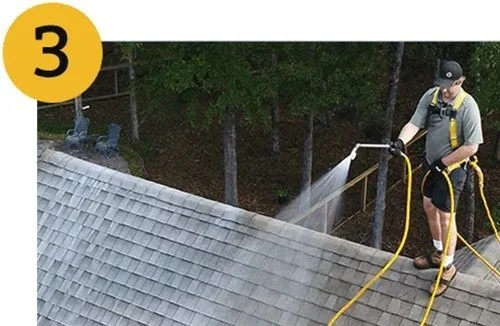 Before treating, RoofRestor will perform a tune-up of your roofing system, sealing potential leaks around the flashing and making repairs for issues like nail pops and damaged vent covers. Once we’ve completed the tune-up, we’re ready to spray RoofRestor.